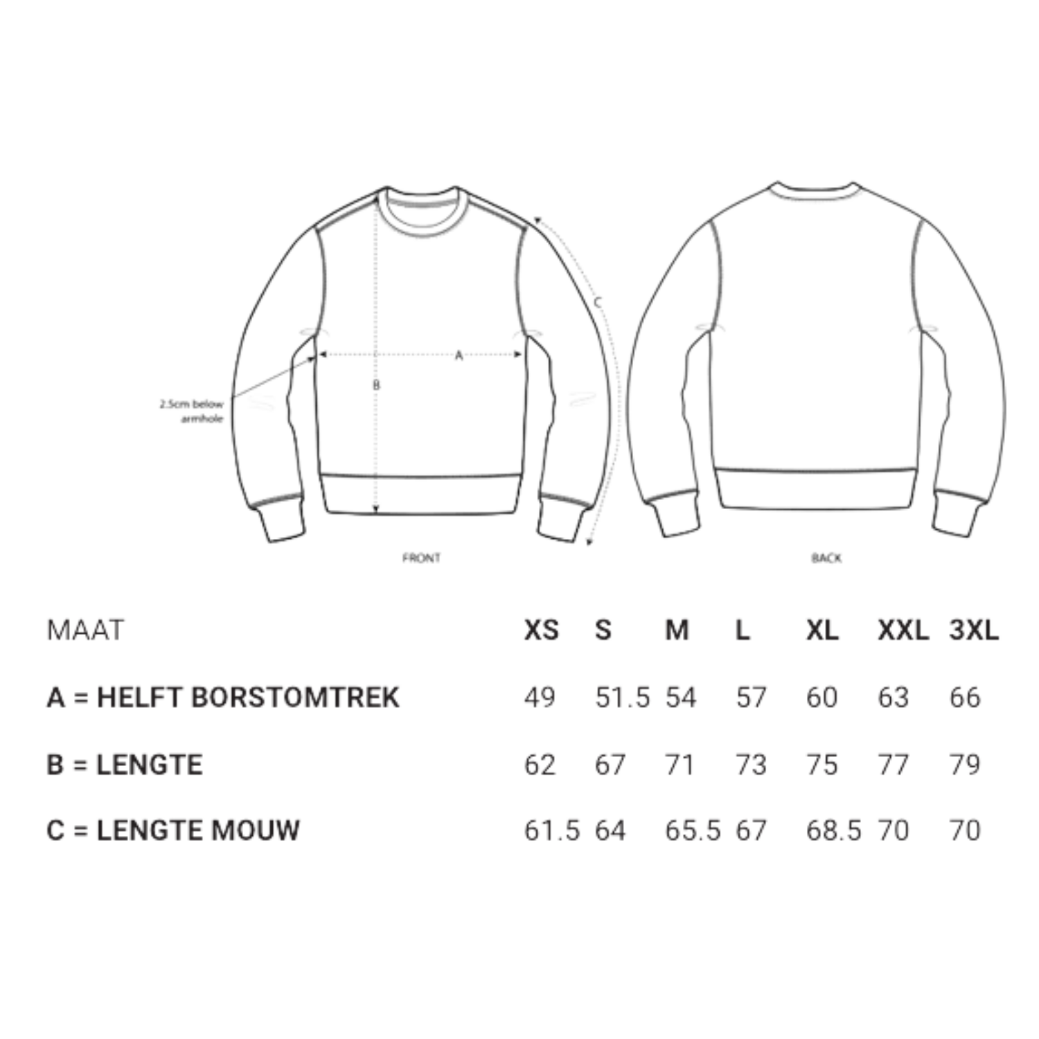 Het is niet mogelijk om kledij te retourneren of om te ruilen voor een andere maat.